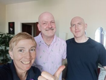 Patrick, photographed with former flatmate, Bea, and current flatmate, Stuart