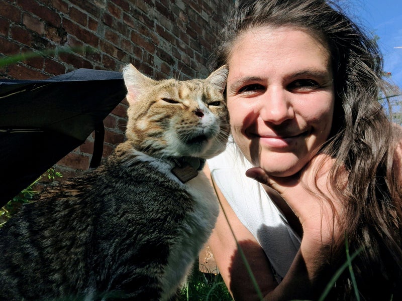I come with a bonus kitty, a 10-year-old female moggy named Misty. She's the best cat in the world, in my slightly biased opinion. Very lazy and mainly enjoys sunbathing and cuddling in bed. Quiet and sleeps through the night with me in my bed, and never hunts wildlife. Couch potato and lap dweller.