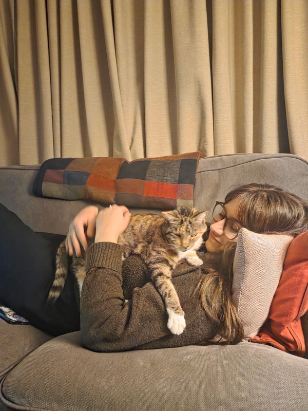 I have a cuddly cat, Precious Miss, the laziest animal in existence.
