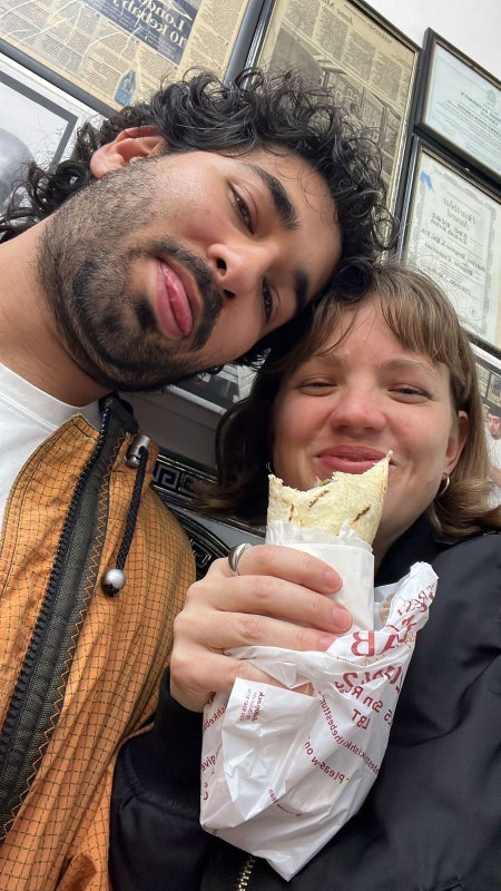 We are Indi (he/29) and Georgia (she/30), two friends looking for friends to join up with and find a 4/5 bed house. We’re looking at Harringay but are open to other areas, particularly south east, and our budget is around £700-800 each.