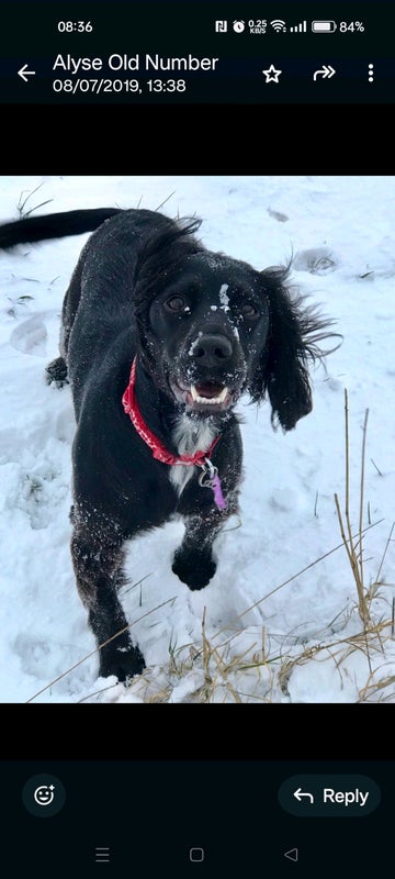 I have a beautiful 10 year old Sprocker Spaniel. She is a friendly girl but not compatible with cats.