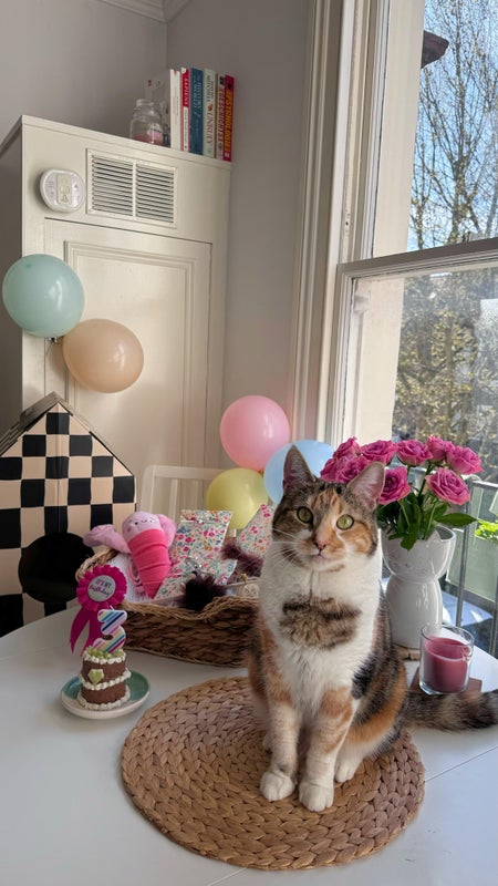 I’d be moving in with my cat, Phoebe. She’s a 3-year-old calico tabby, very clean, low-maintenance, and quite independent. Usually found bird watching or watching TV, and very sweet and friendly once she warms up. She’s used to living in a flat and easy to have around, with the occasional zoomies moment. Very much an indoor cat, but might enjoy some outdoor space if available.
