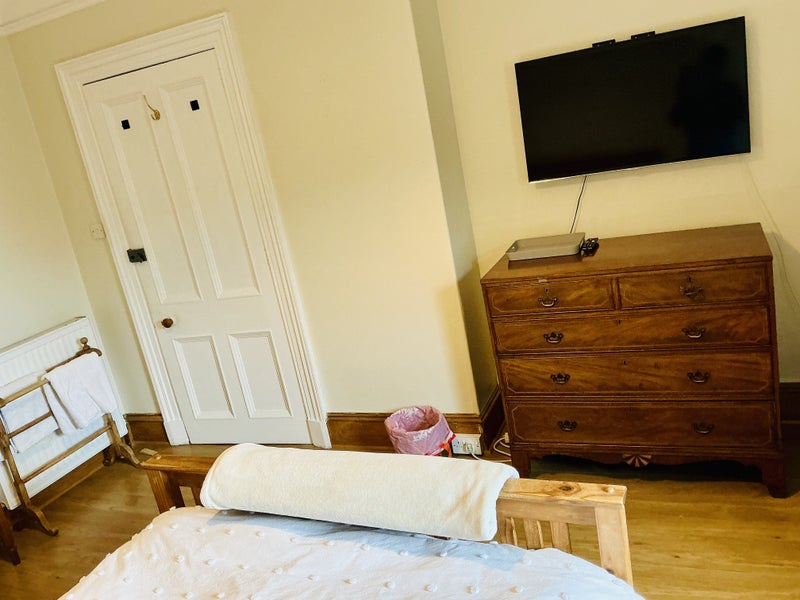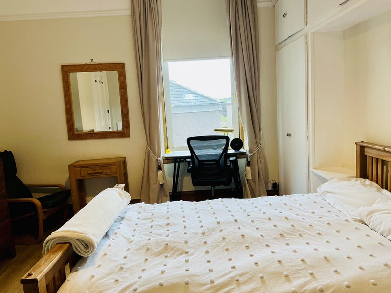 Hi there I have a en-suite double room available as of now .The house is on Great Western rd close to shops bus shop plenty parking ,walking distance to town . The guests have their own lounge with wood burning stove ,dining room utility room and kitchen .The rooms get cleaned and linen changed weekly ,the kitchen cleaned daily . The house has Netflix’s internet .