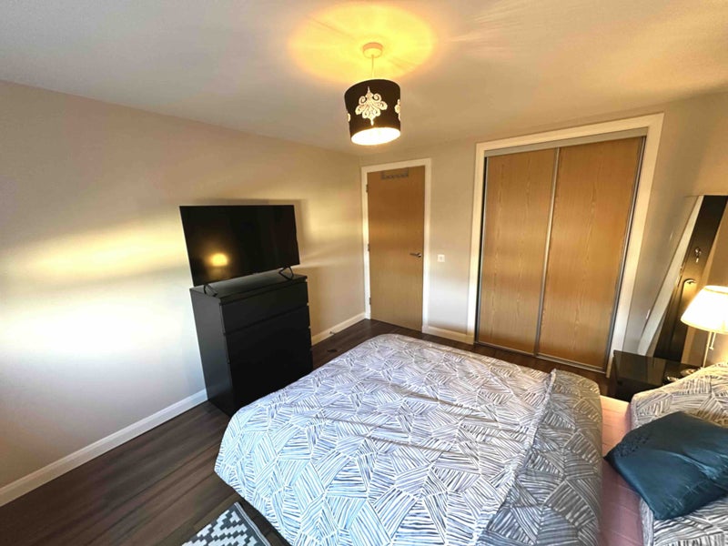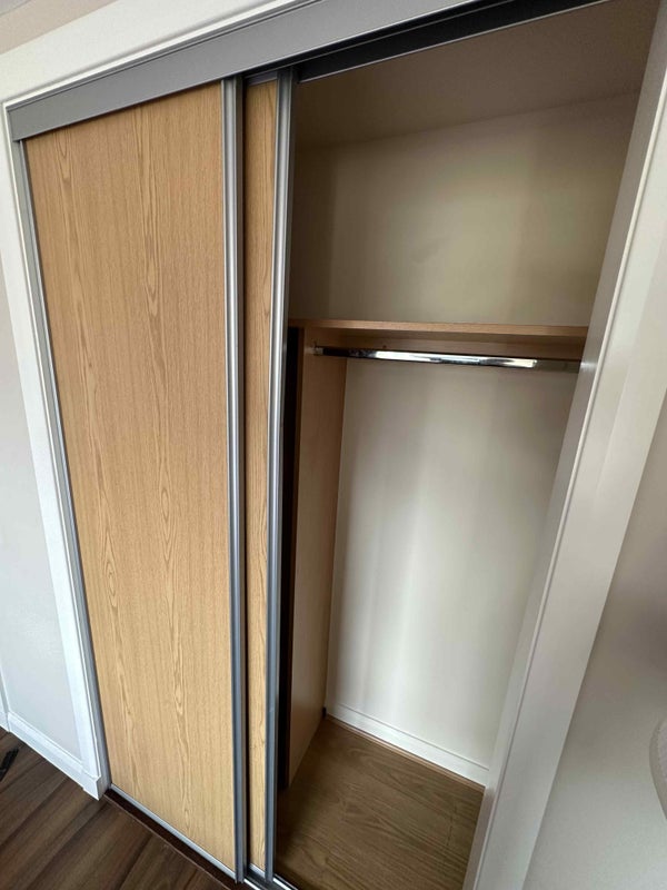 The room is fully furnished and has plenty of storage.