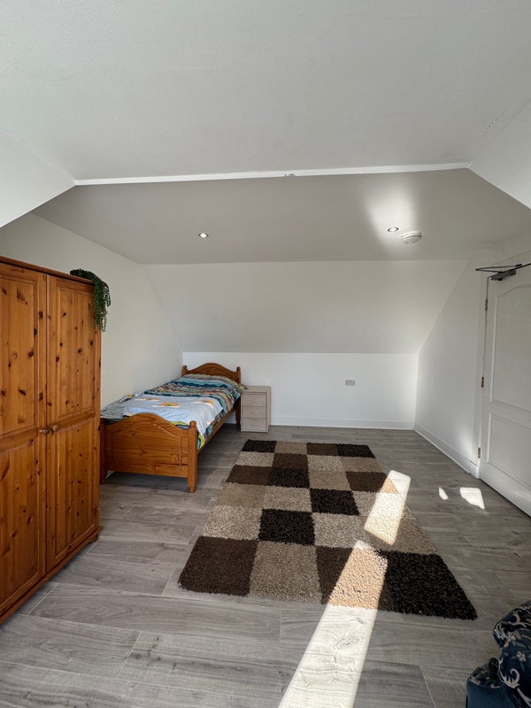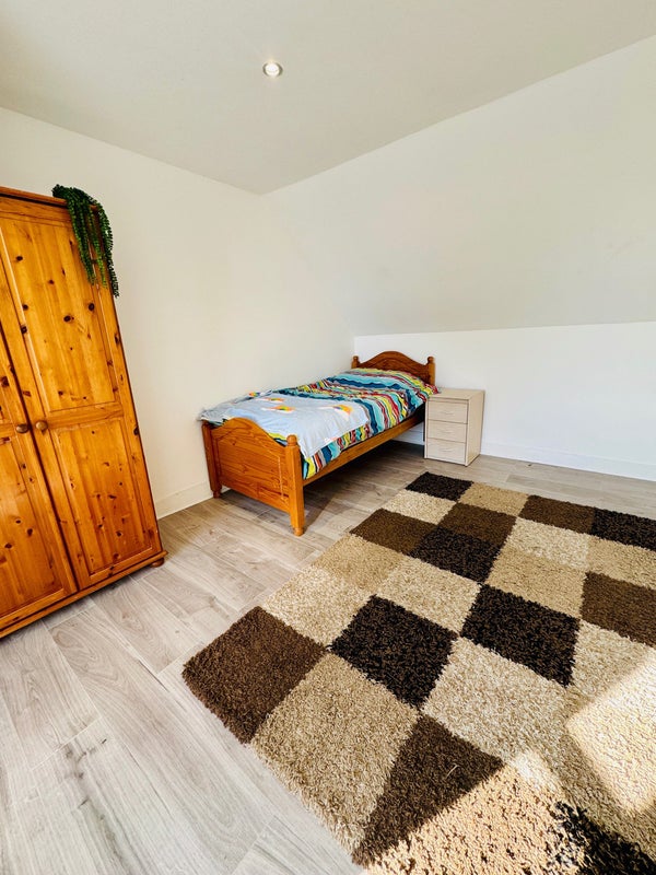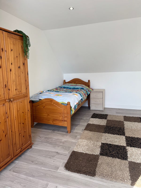 We’re renting out one room upstairs in our full- private house. The room is part of a shared upper floor with one other tenant. You’ll share a kitchen and bathroom with just one person.