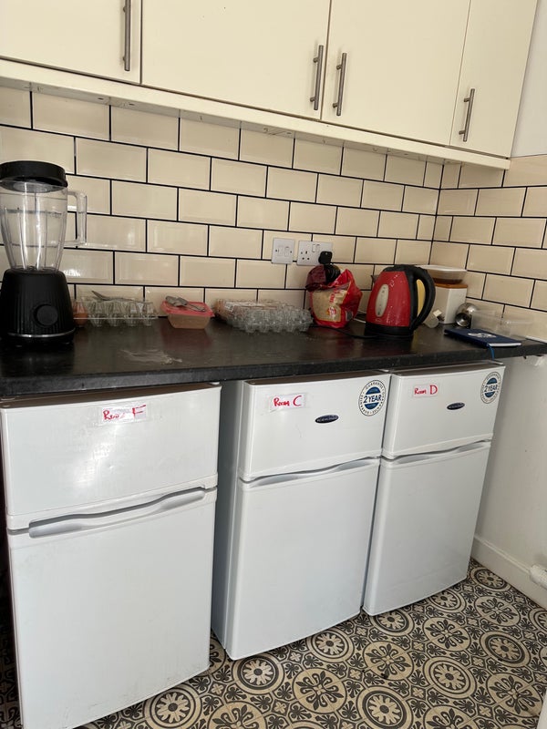There is large dining kitchen with washing machine, cooker and each bedroom has an individual fridges, freezers, etc.
