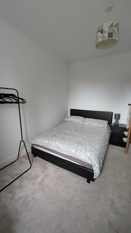 The room includes a double bed, chest of drawers, clothes rail and bedside table. You’ll also have access to a shared living room, kitchen and bathroom, plus a garden. Free parking is available directly outside.