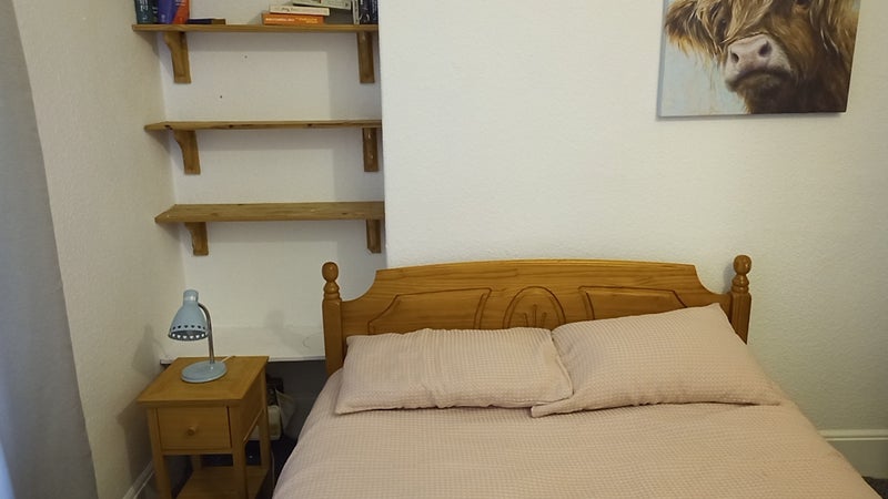 This is a larger double room with a double bed, wardrobe, table, table lamp, office chair and a chest of three drawers. You will be provided with two pillows and 2 pillow covers, a double duvet with duvet cover, mattress protector and a double fitted bed sheet.
