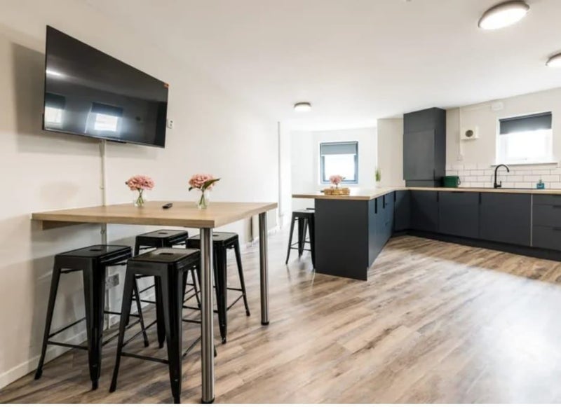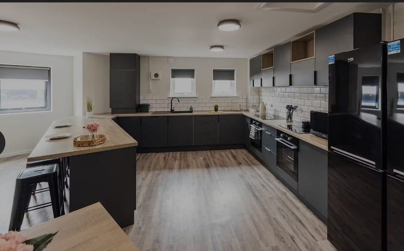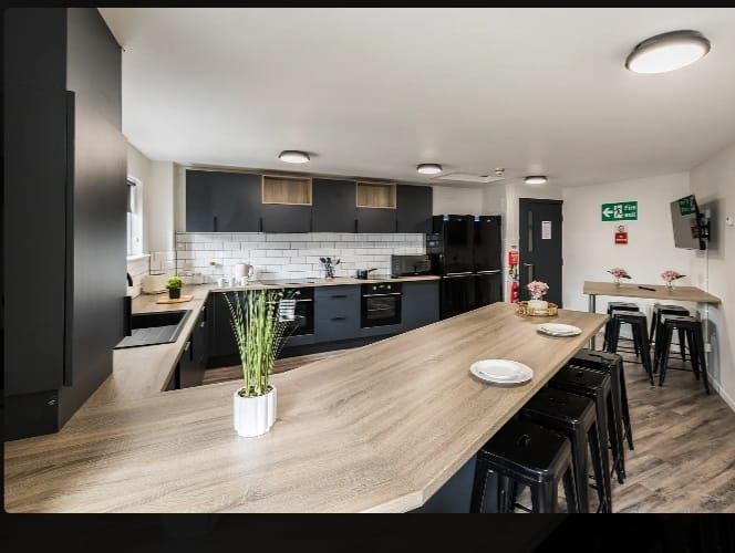 These are a set of 9 bedroom ensuite apartments. Each single room comes with an attached private bathroom, thereby making it ideal for single occupancy. In addition, there’s a kitchen and common area that’s shared among everyone.