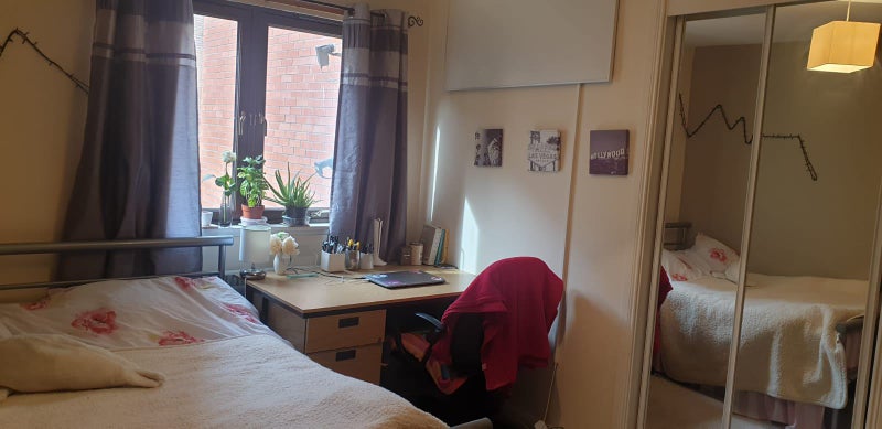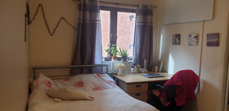 Flat itself is fully furnished (bed, wardrobes, desk, etc.). Double glazed windows and central heating. South facing windows in so it’s flooded with light during the day. Decent size kitchen equipped with all appliances (washing machine, oven, cooker, etc.). Nice bathroom with bathtub and electric shower. There’s also a fast wifi connection for 13 pounds per month. Perfect for single professional or student. Must be seen to be fully appreciated.