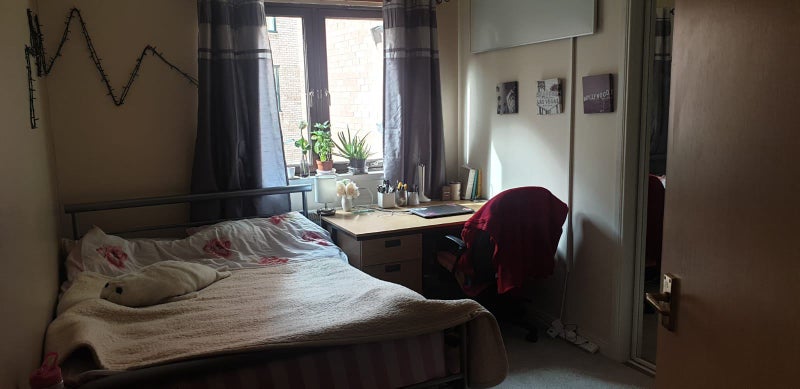 Double bedroom in shared flat with one more person (professional) cross the street from Dundee bus station, 3 minutes walk to Gallagher Retail Park (TKMaxx, M&S, Next), or Wellgate shopping centre, 12 mins to both Universities.