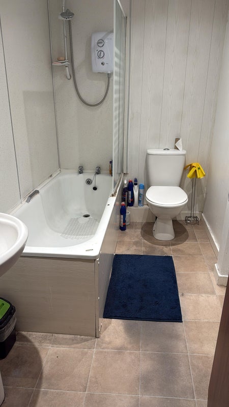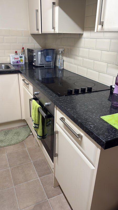 Flat itself is fully furnished (bed, huge wardrobe, desk, etc.). Double glazed windows and gas central heating so the cheapest heating you can get. Decent size kitchen equipped with all appliances (washing machine, oven, cooker, etc.). Separate living room. Nice bathroom with bathtub and electric shower. Perfect for single professional or student. Must be seen to be fully appreciated.