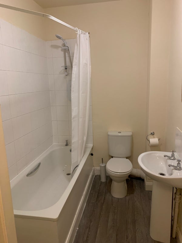 1 room with a double bed, desk & chair in a 4 bed flat in dundee. the flat has two bathrooms, kitchen, and a living room also!
