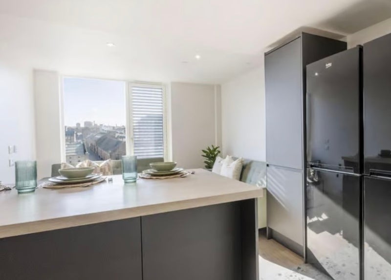 You’ll have access to a large communal space with a fitted kitchen, including an oven, 4 hobs, fridge freezer and a microwave.