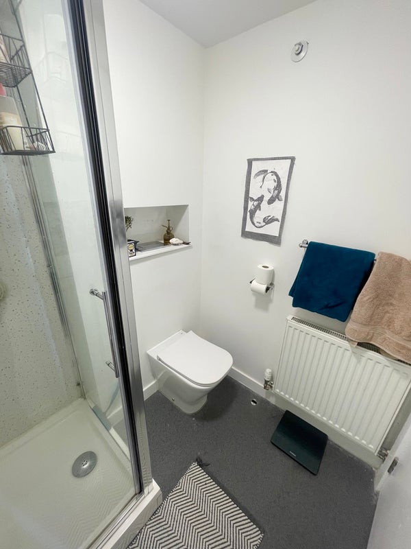 In the bedroom, there is shelving, under-bed storage, drawers and a wardrobe for storing items. Additionally, there is a modern ensuite bathroom in fab condition attached. There is good daylight in the bedroom as well as bright ceiling lights in the bathroom and bedroom.