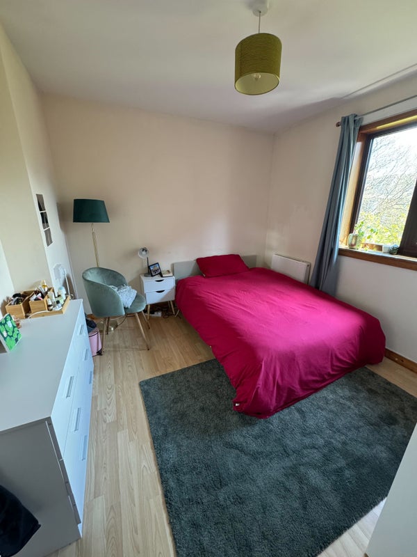 A double room is available in a 2-bedroom flat, ideally located in a quiet residential area just a short distance from the university. The room will be equipped with the double bed and the drawer shown in picture, the rest of the furniture belongs to the current tenant. The flat offers a fully equipped kitchen, a shared bathroom, and a handy extra storage room.