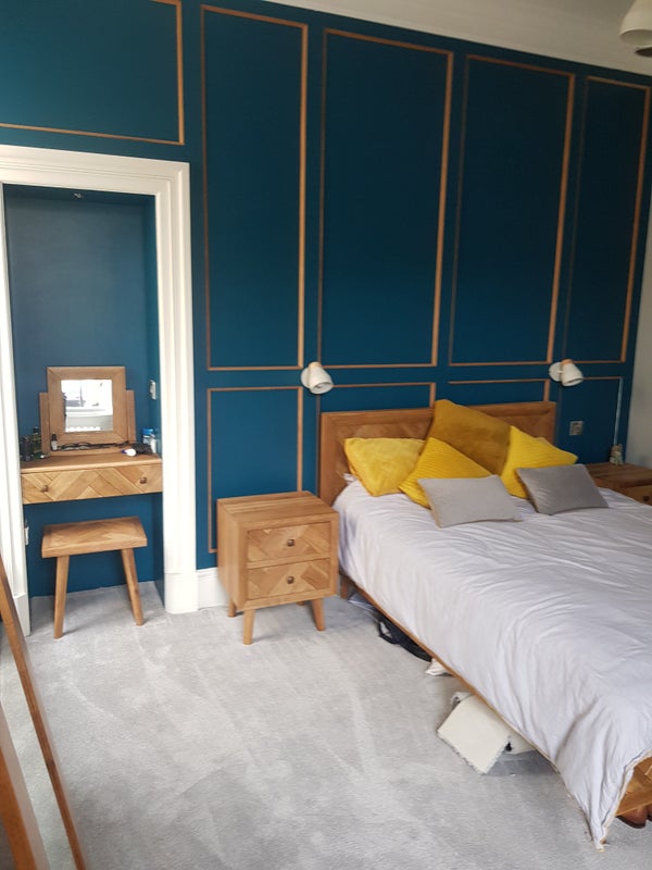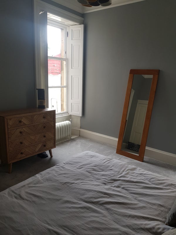 Large room with separate changing/storage room and recently fitted en-suite. Ground floor flat of Victorian town house in lovely cherry blossom lined street in the heart of town only couple minutes walk from train station. Off road parking available. Large modern kitchen with sitting area. House is family home to me and my 2 daughters who live with me 50% of the time. Very happy household, easy going family looking for someone similar.