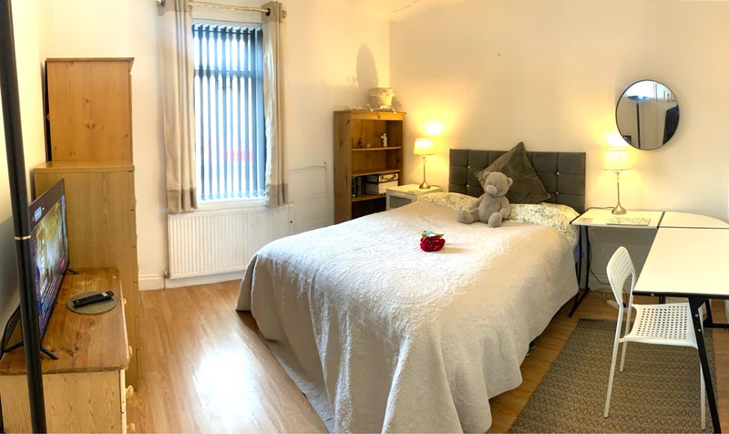 Well maintained Front and back gardens, free street parking, dinner kitchen, electric shower and bathtub. Private lock, new led smart tv