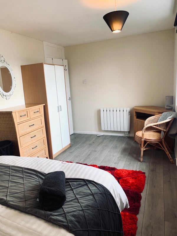 Two large rooms in a spacious ground floor apartment in Irvine. Each room has lock, you have access to the livingroom, 48" Samsung curve smart tv.