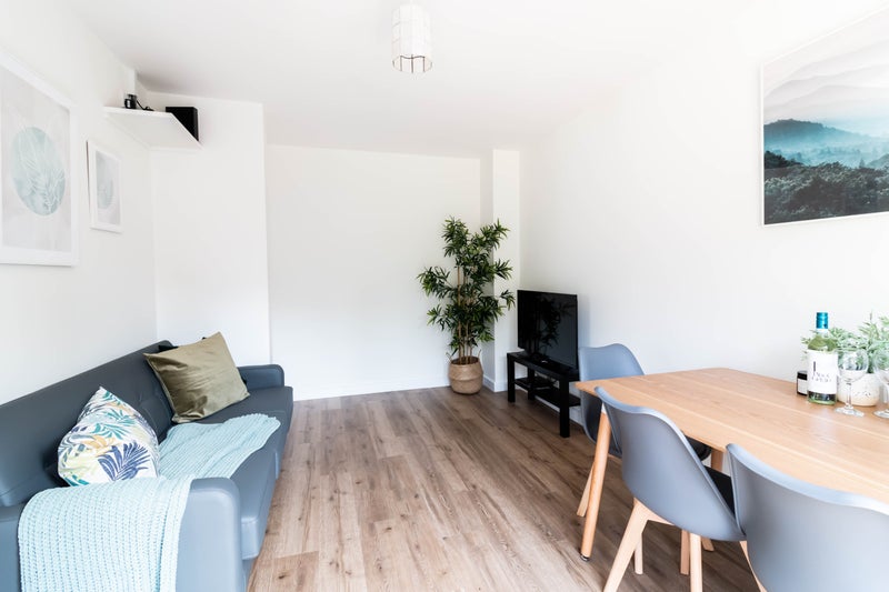 The house has a luxury kitchen and a spacious shared living area with widescreen 'smart' TV. There is a rear garden and private off-street parking for 3/4 cars and plenty of parking on the street.