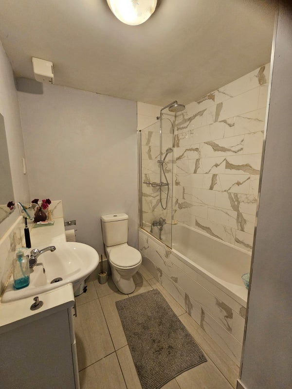 The bathroom is on the same floor and has a bath/shower with a fitted glass panel. It will be shared with only 1 other person.