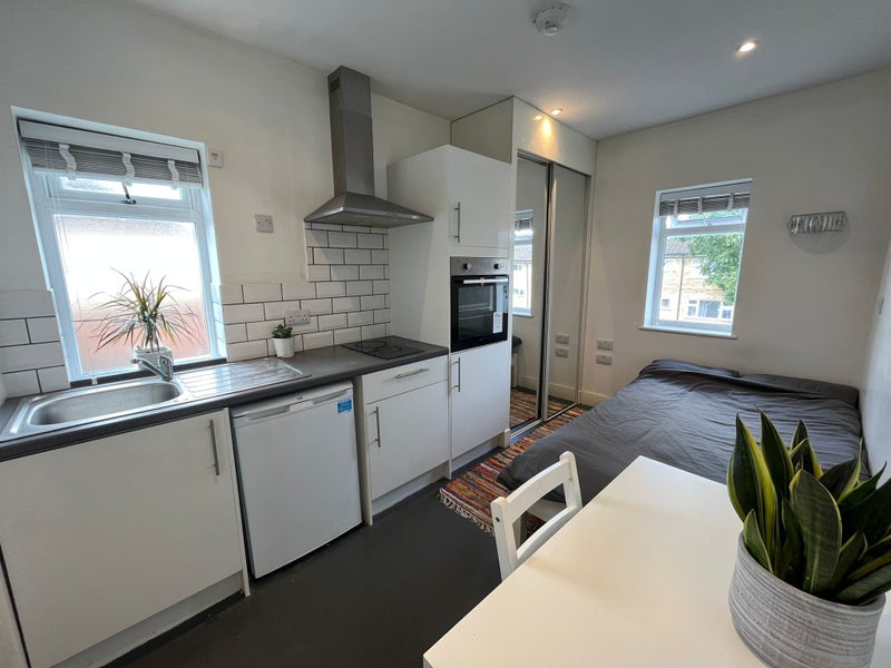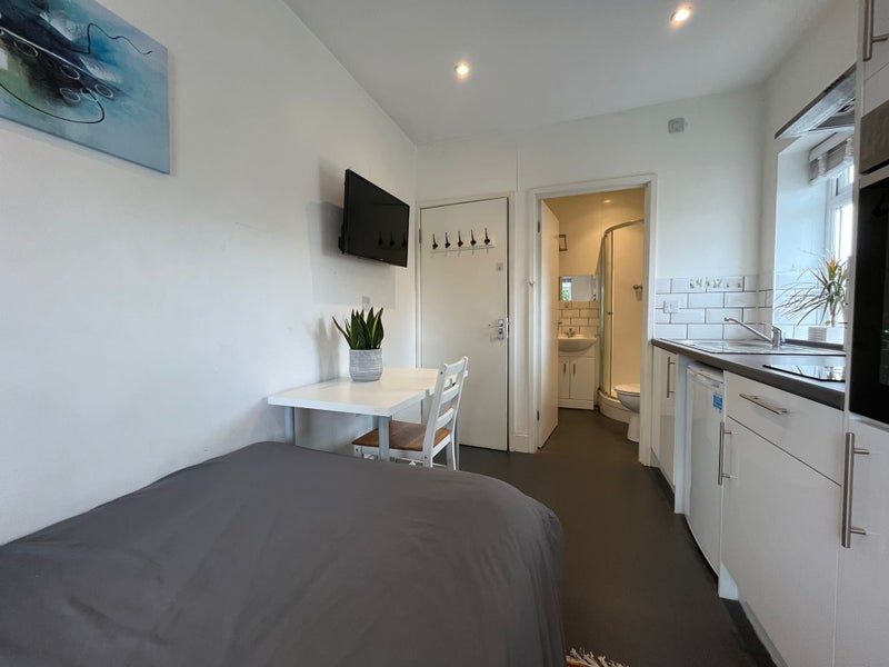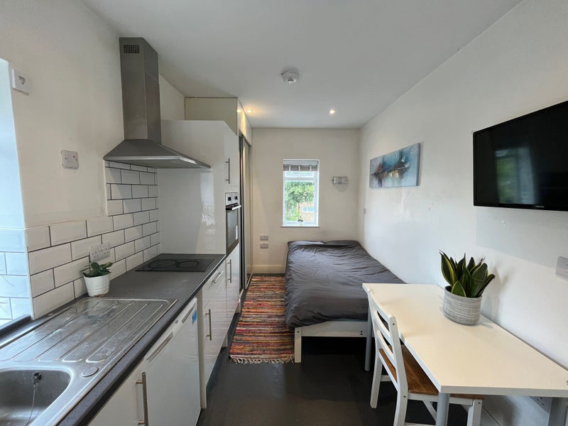 Access to the house, own kitchen with private en-suite shower room and with a study desk, chair, wardrobes and drawers.