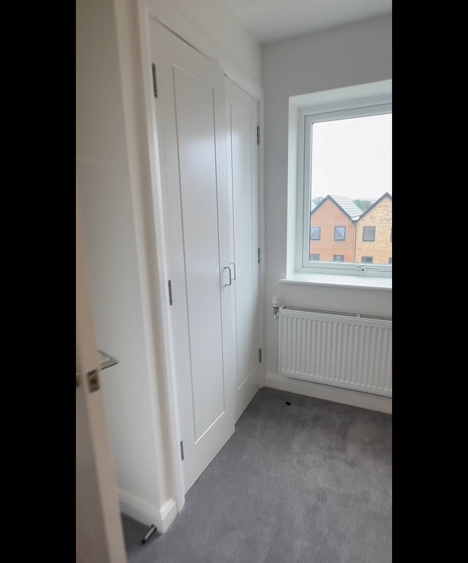 It has a fitted wardrobe and another wardrobe with a single bed in a double side room. Fully refurbished. Fridge, oven and a electric hob. Toaster and a kettle. Have to clean up after the mess and keep the house clean and using the bathroom has to be clean after used. Keep it clean all the time. Professional female only. No pet and visitors are not allowed. No smokers. Has a parking outside no permits needed. Brand new mattresses and bed. New build house.