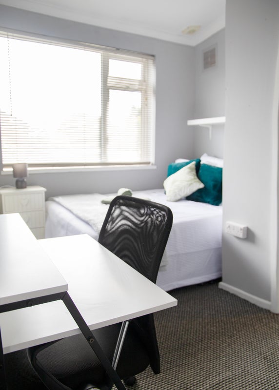 • Fully furnished with a comfy bed, wardrobe, desk & chair