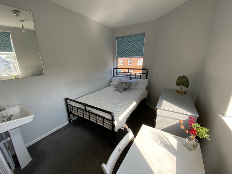 The room is fully furnished with a high quality bed, wardrobe and a study desk and chair. There is a sink in every room,