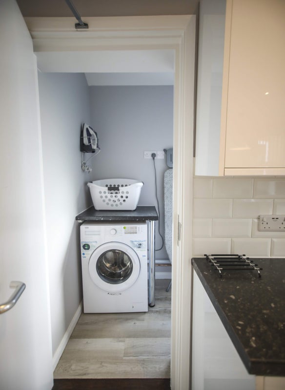 🔹Utility/laundry room with washing machine, space for drying clothes, ironing facilities, vacuum cleaner