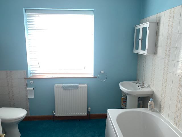 You will share the main bathroom with only one other lodger. It features an electric power shower, sink, bath, and toilet.