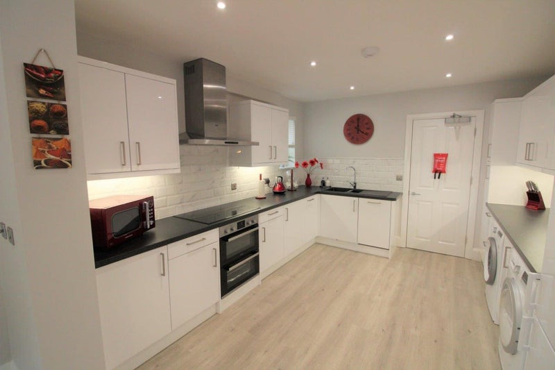 • Large, well-appointed kitchen with 2 ovens, 5-ring induction hob, 2 large fridge freezers, microwave, dishwasher, washing machine and tumble dryer (no coin meters)