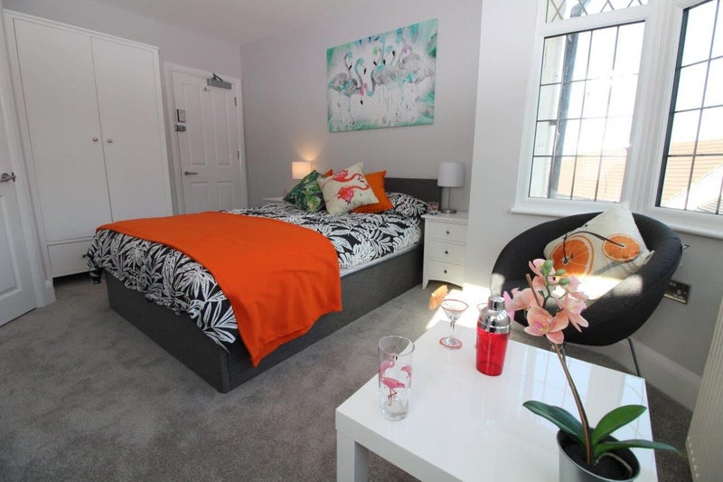 • Wardrobe, large chest of drawers, 2 bedside cabinets, coffee table, pod chair and a desk so you are able to work at home