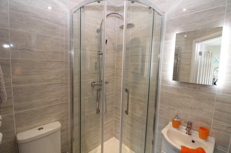 • En-suite bathroom with high performance drench shower, toilet, LED mirror, heated towel rail, and sink with storage underneath