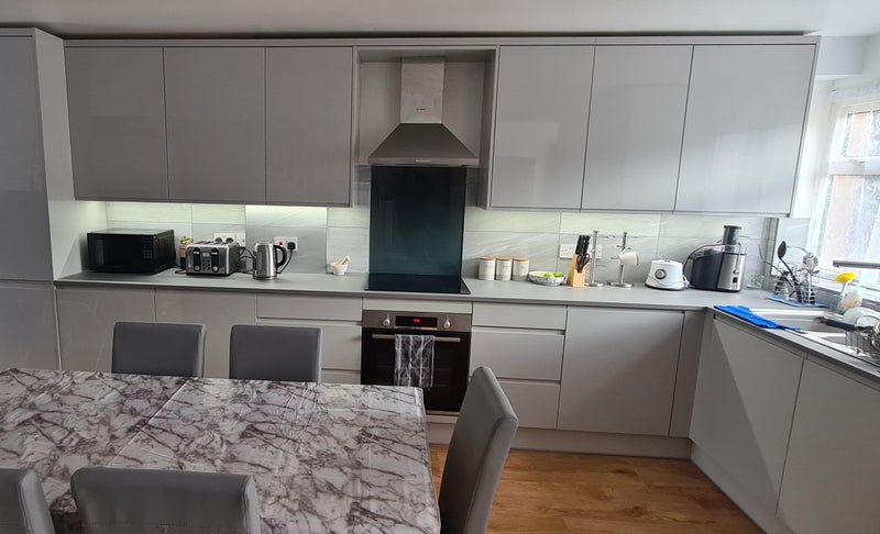 A 5 Bedroom Townhouse which has been renovated to a high standard. The new kitchen comes equipped with brand new utensils, a microwave, kettle, toaster, oven, induction hob and dining table to fit up to 8 persons. There is a shower room in addition to the main bathroom available. Located in the Limbury area of Luton with local amenities in very close proximity (under 5 minutes walk) and with Leagrave train station approximately 15 minutes walk. There is a regular bus service that runs from outside to Luton Town. The area is quiet and has free parking outside the house and off street parking available. Each bedroom comes furnished with a double bed, wardrobe and mini fridge plus has a TV point and ethernet socket to connect directly to the Internet. The house has fast Virgin Broadband and WiFi extenders on every floor for strong WiFi connections. Have a regular cleaner to clean the communal areas of the house.