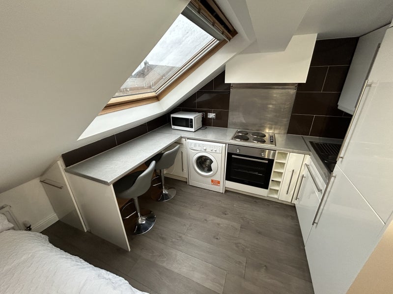 Spacious studio flat with an ensuite and kitchen, recently redecorated.