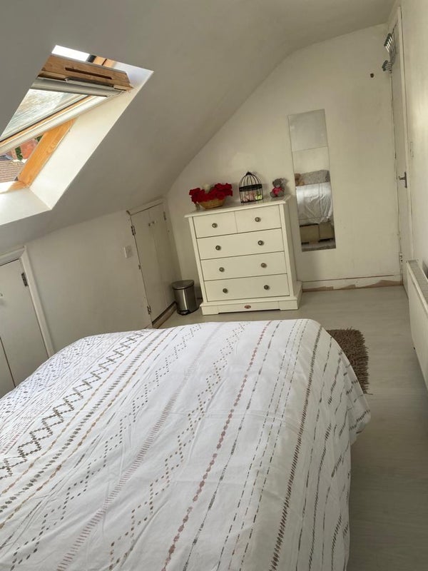 ONE double bedroom (second bedroom shown in pictures) with a shared bathroom available. Ample space with storage. Rooms and bathroom located in the top floor (attic) of property, so secluded from the rest of the house/homeowners.