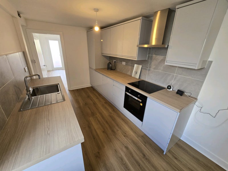 Kitchen with all intergrated appliances ,washing machine, fridge, cooker.