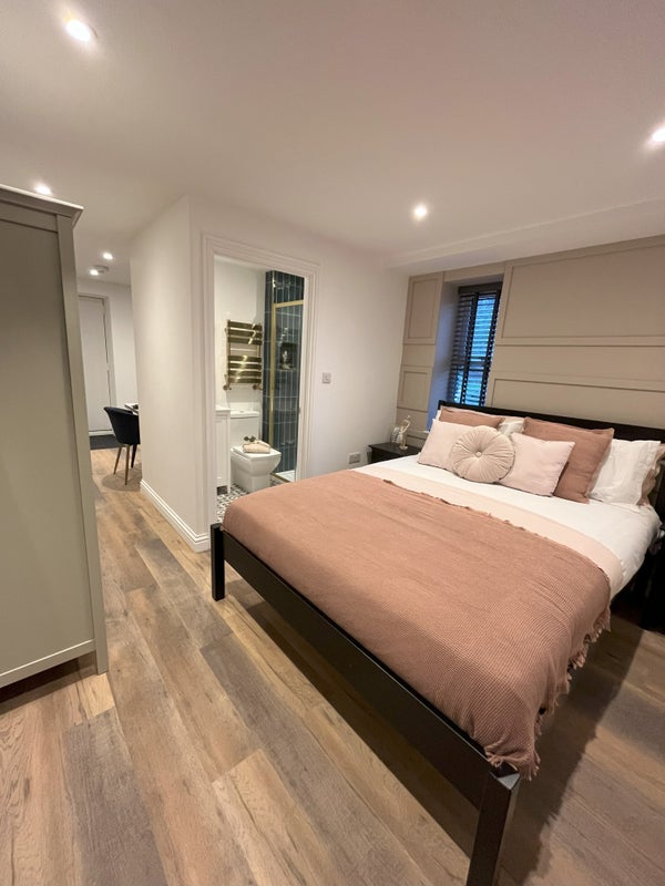 The Studios are kitted out with bespoke Howdens Kitchens with high end appliances all provided and plenty of worktop space to prepare meals meaning you have your own private space to enjoy. The Studio is accommodated by a private En-Suite Bathroom with walk in shower, high gloss tiles, heated towel rail, and mirror.