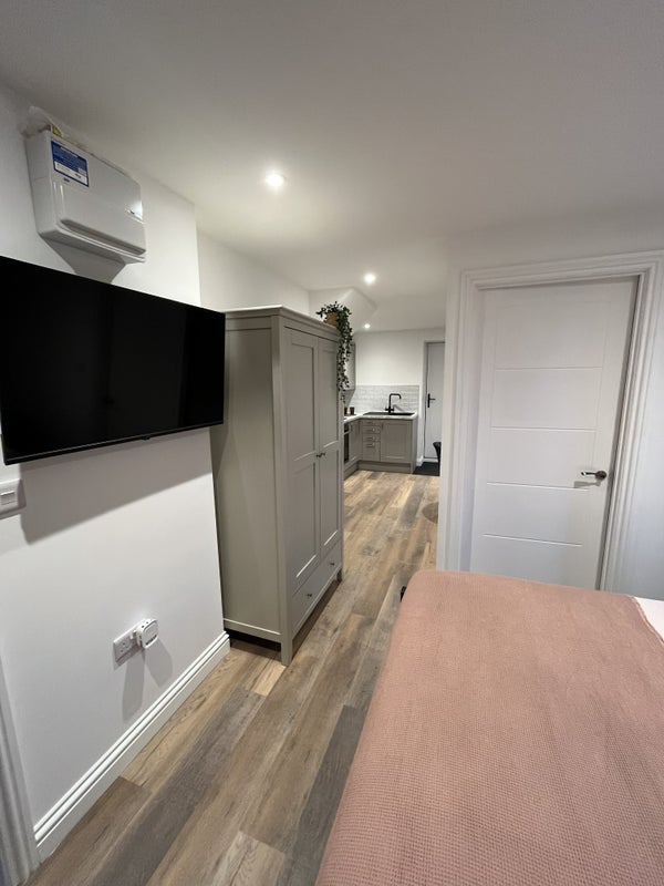 Included in this Studio is a King size bed with brand new high quality Mattress, Smart TV, Superfast full fibre broadband, Bedside table/s, and Wardrobe.