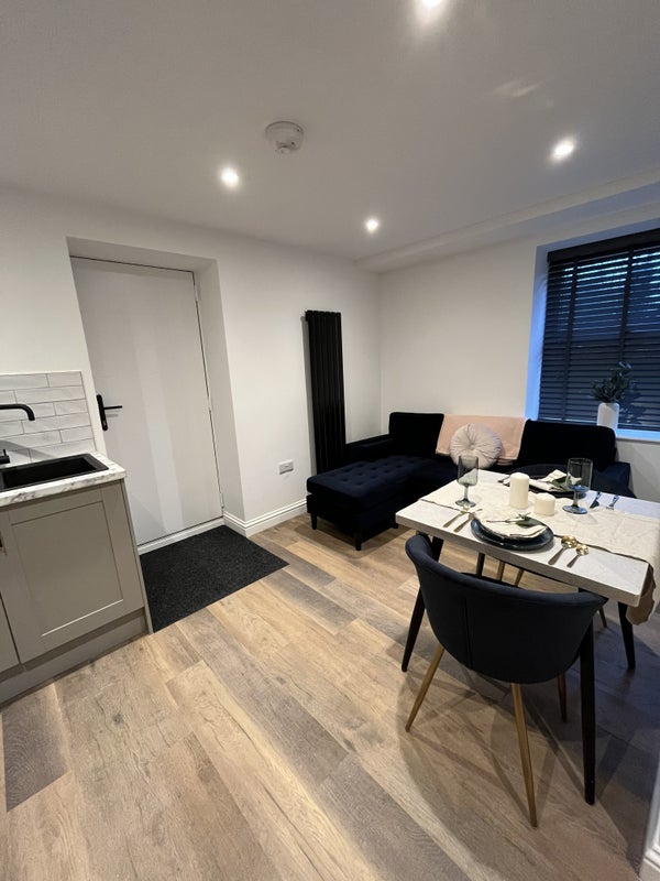 Washing and drying facilities are provided in your Kitchen space as well as a Dining table and chairs and Velvet chaise sofa. With all bills included, even Council Tax, these Studios offer private living without the inconvenience of setting up various utilities yourself.