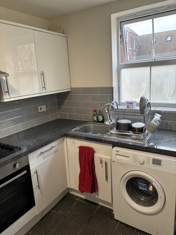 You’ll be sharing the flat with two others in total (including the live-in landlord). There’s a shared kitchen and a shared bathroom used by one other lodger only — the landlord has a private ensuite, so the main bathroom is shared between two people.