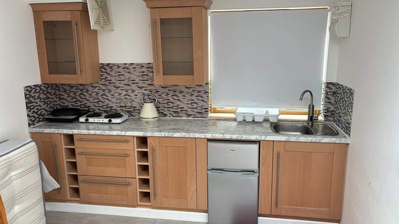 🍳 Private kitchenette with fridge, microwave, and hob