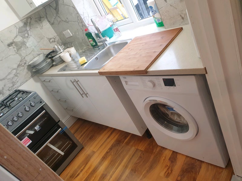 New fridge freezer over washing machine and cooker gas