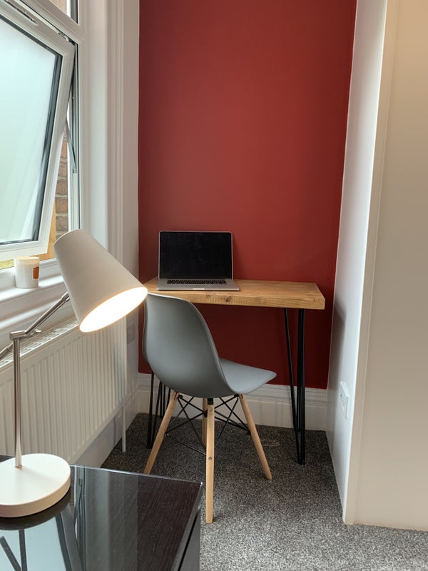 • All rooms are furnished with small double bed, high-spec mattress, bedside table, chest of draws, desk and chair and fitted wardrobe