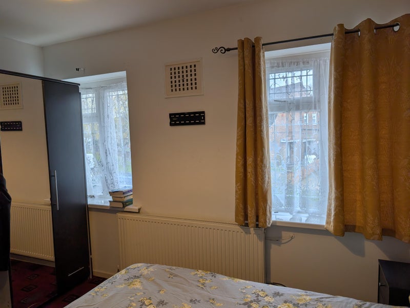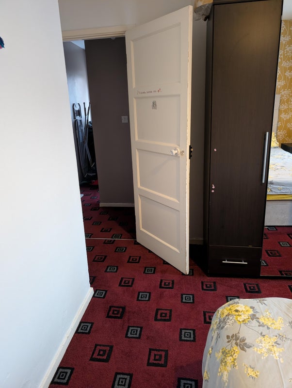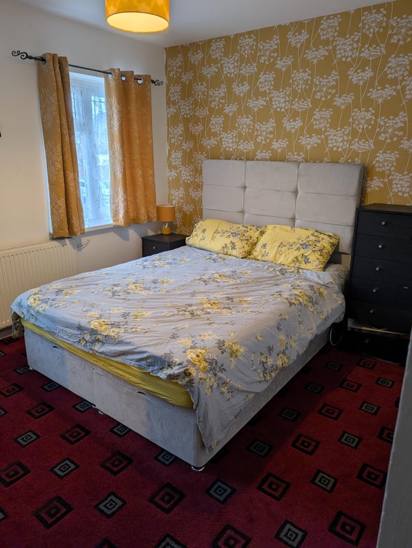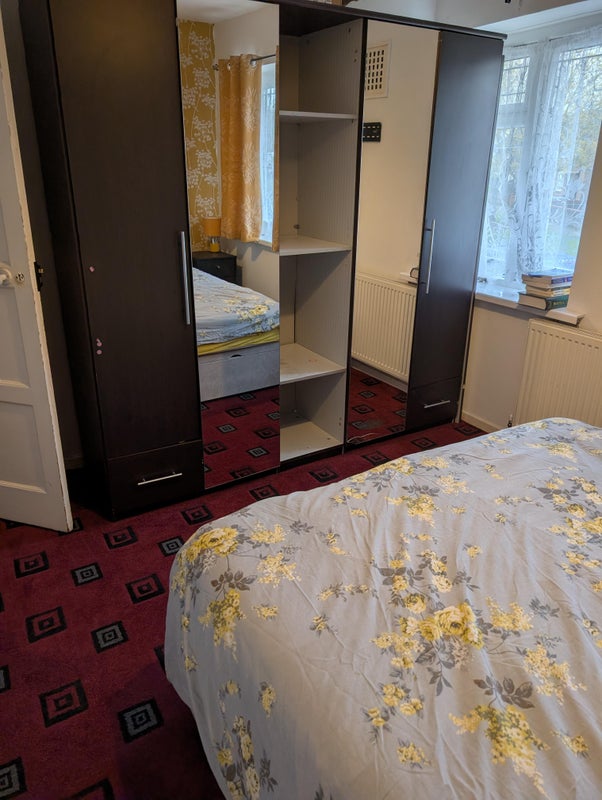 The room comes fully furnished with a double bed, wardrobe, and storage space. The house has a shared kitchen, living area, and bathroom, all kept tidy and well maintained.