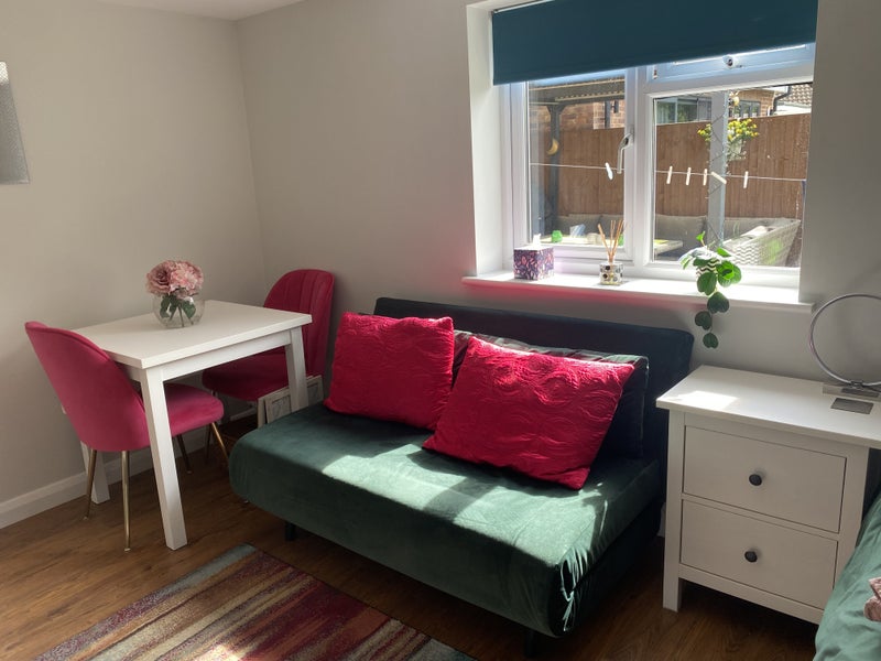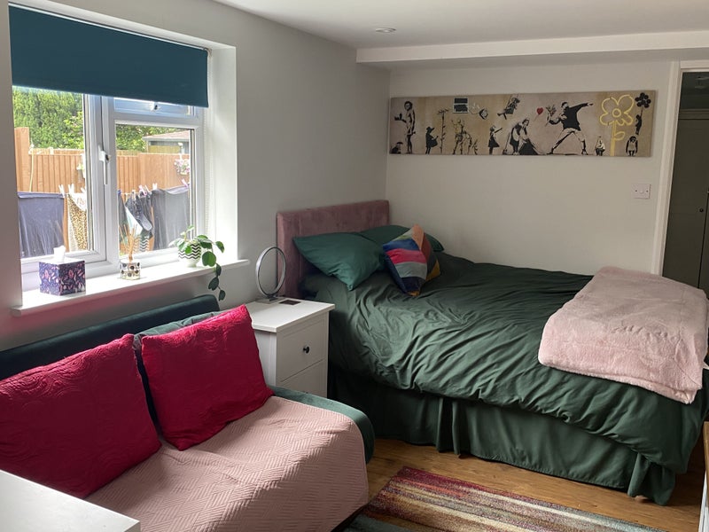 This is a great opportunity for a professional person to rent a large room in a Completely separate annex. The room is detached from the main property with its own front door and security coded entrance. There is WIFI and a large smart TV, 1 double bed and a sofa bed. A dining table. . A separate Dressing Room, shower room. Plenty of Parking. 6 minute drive to Ascot Station. When there is no race day parking near the station is free. Roughly 10/15 minute bike ride from the high Street. A non smoker is a must, sorry no pets. Single occupancy only. Deep cleaned to a very high Standard. Viewings welcome. I will consider some longer lets. Monday to Friday let. Please message me to discuss. There will be a small extra charge in the winter to cover the heating bills.
