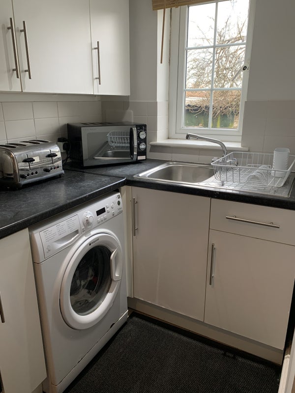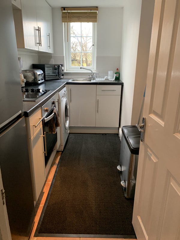 With Large king size bed- room and a large Ensuite bathroom with shower and separate fully fitted galley kitchen ,attached to our house for rent , in lovely quiet street in pretty little village of Sunninghill in Ascot , just a few minutes walk from all the restaurants and shops of the high street and 15 minutes walk to Ascot train station with direct lines to London Waterloo , 15 minutes drive to Windsor .