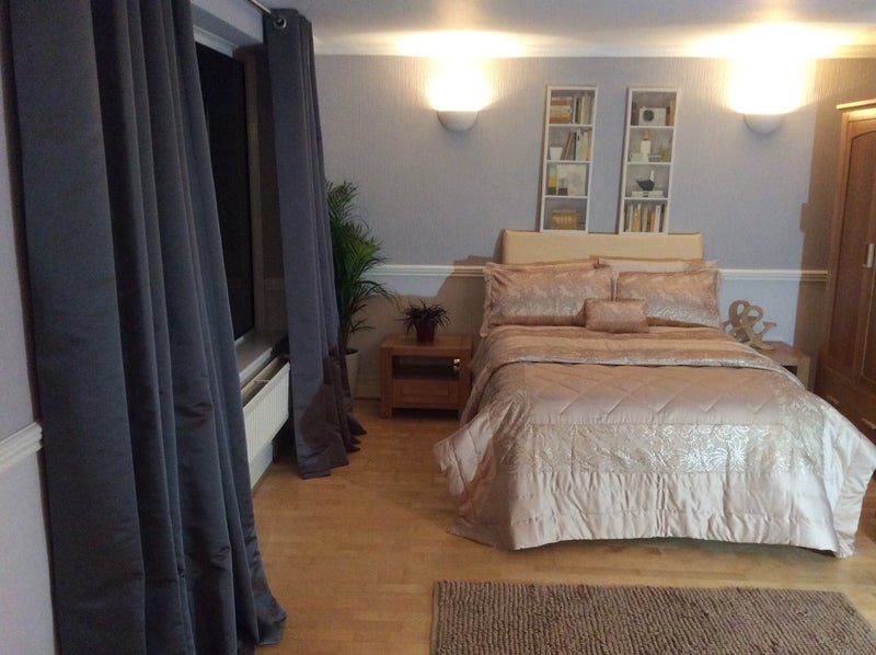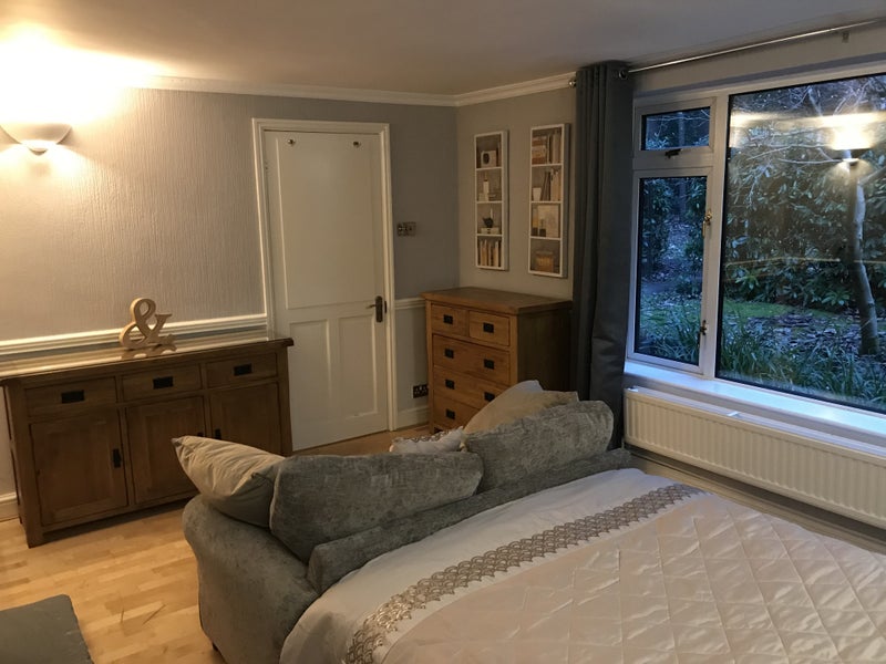 This spacious 16 sqm ground floor double room is set within a beautifully maintained property tucked away in a small cul-de-sac, surrounded by woodland, offering a peaceful and private living environment.