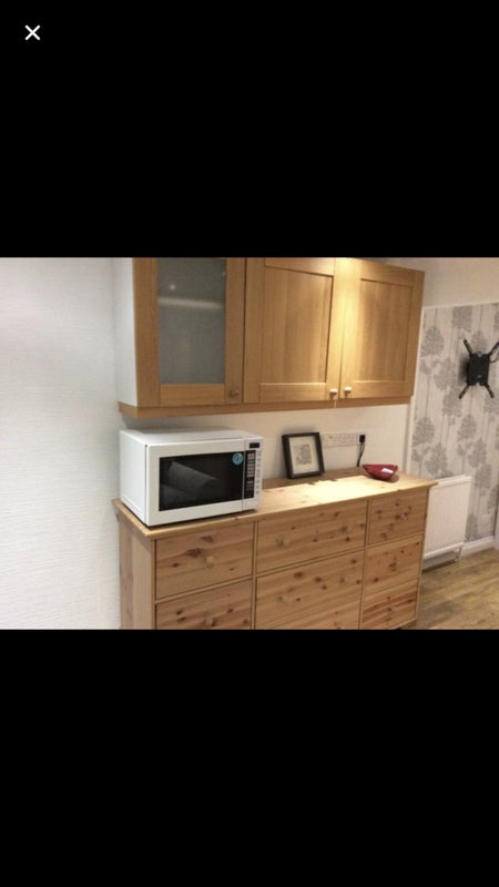 . Fridge kettle kitchen units and work top space